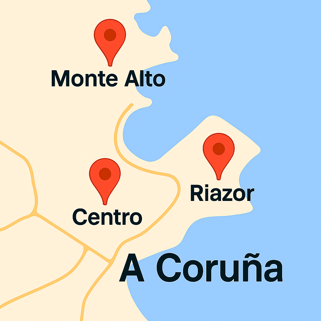 Centro · Riazor · Monte Alto · Los Mallos · Ensanche · Elviña