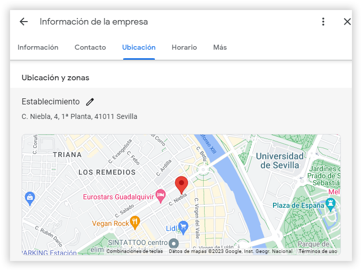 Para acceder a estas opciones escribe el nombre de tu empresa en Google o también puedes buscarlo como «Mi negocio»