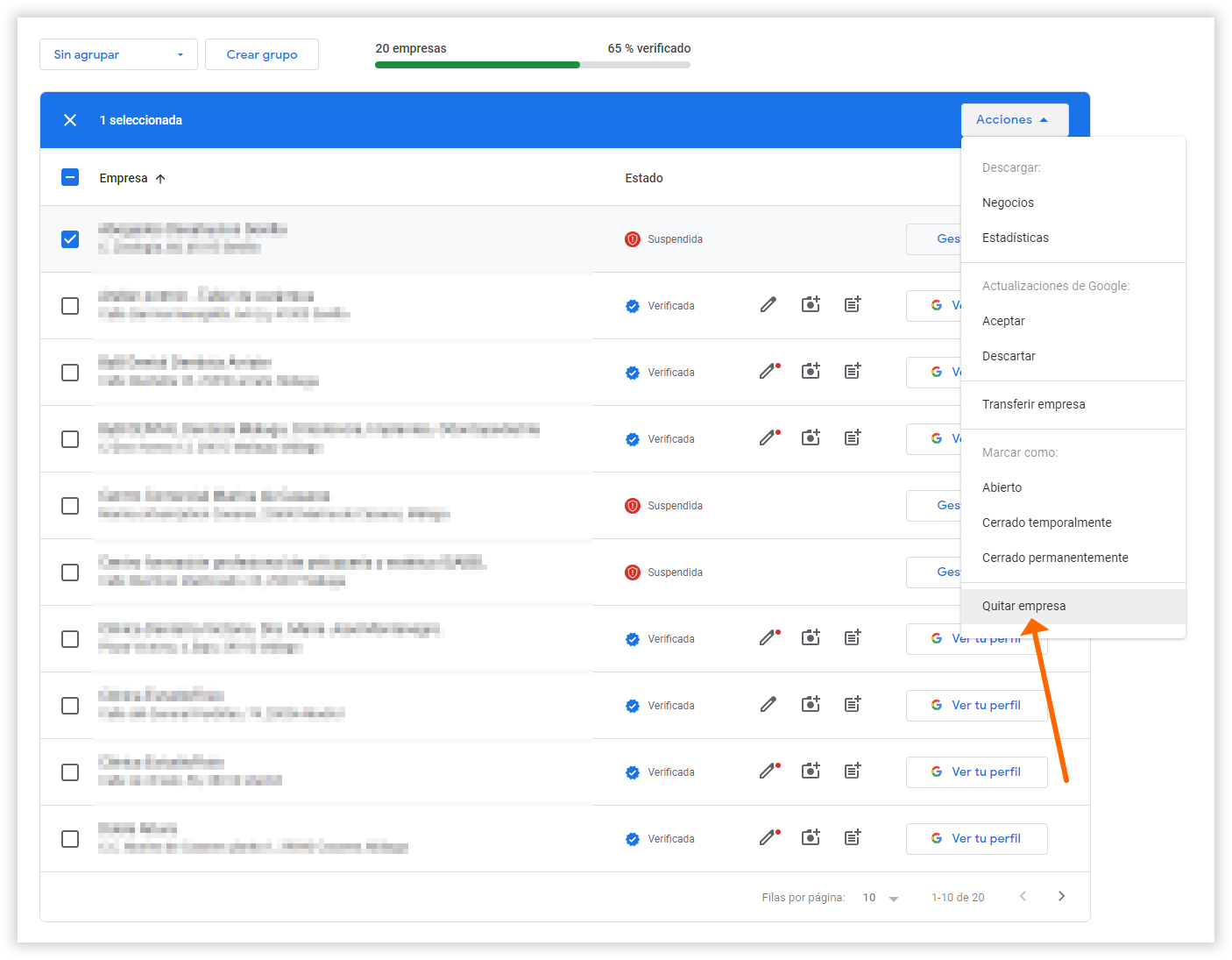 En el caso de que quieras cerrar permanentemente varios negocios puedes hacerlo desde el administrador de Perfiles de Empresa.