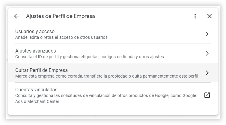 Si eliminas tu cuenta de Google perderás el acceso a la gestión y administración de todos los perfiles de empresa asociados a esa cuenta.